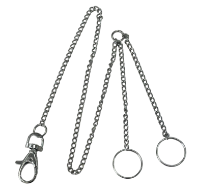 Cadenita metálica para colgar material de cirugía y otros utensilios a la bata del uniforme, con dos  mosquetones.
