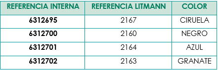 Color | AZUL R.2164, BLACK EDITION R.2161, CIRUELA R.2167, GRANATE R.2163, NEGRO C/HUMO R.2176, NEGRO C/LATON R.2175, NEGRO R.2160 |