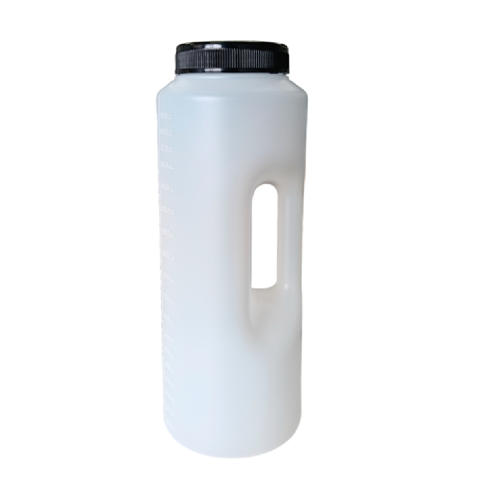 - Cuerpo y tapón fabricados en polietileno de alta densidad.