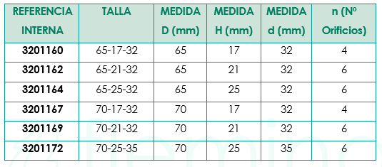65-17-32, 65-17-35, 65-21-32, 65-21-35, 65-25-32, 65-25-35, 65-30-35, 70-17-32, 70-17-35, 70-21-32, 70-21-35, 70-25-32, 70-25-35