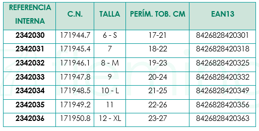 19cm T/6 – S, 2-21cm T/7 , 22-23cm T/8 – M, 24-25cm T/9, 26-27cm T/1 – L, 28-29cm T/11, 3-31cm T/12 – XL